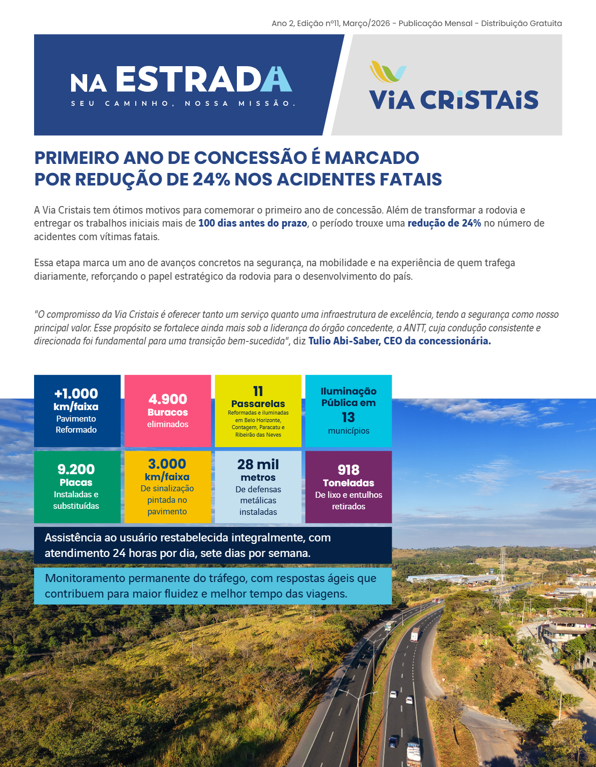 À zero hora do dia 11 de março, a rodovia BR-040 (trecho Belo Horizonte-MG até Cristalina-GO) retornará às operações. Modere sua velocidade, respeite a sinalização e dirija com cuidado.